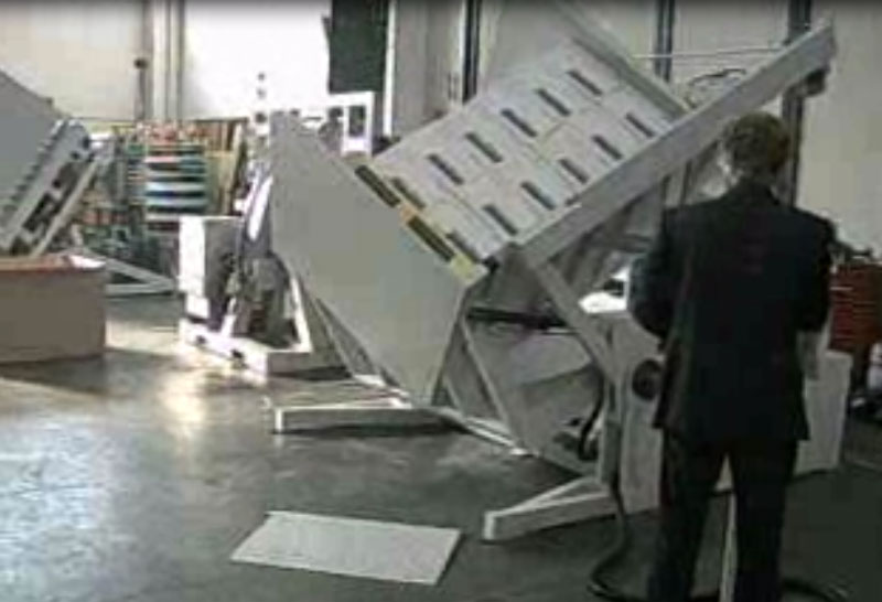 Samzon V exhanger. The V exchanger is a special machine that can exchange pallets from any kind of gods. Wood pallet to other pallets. |